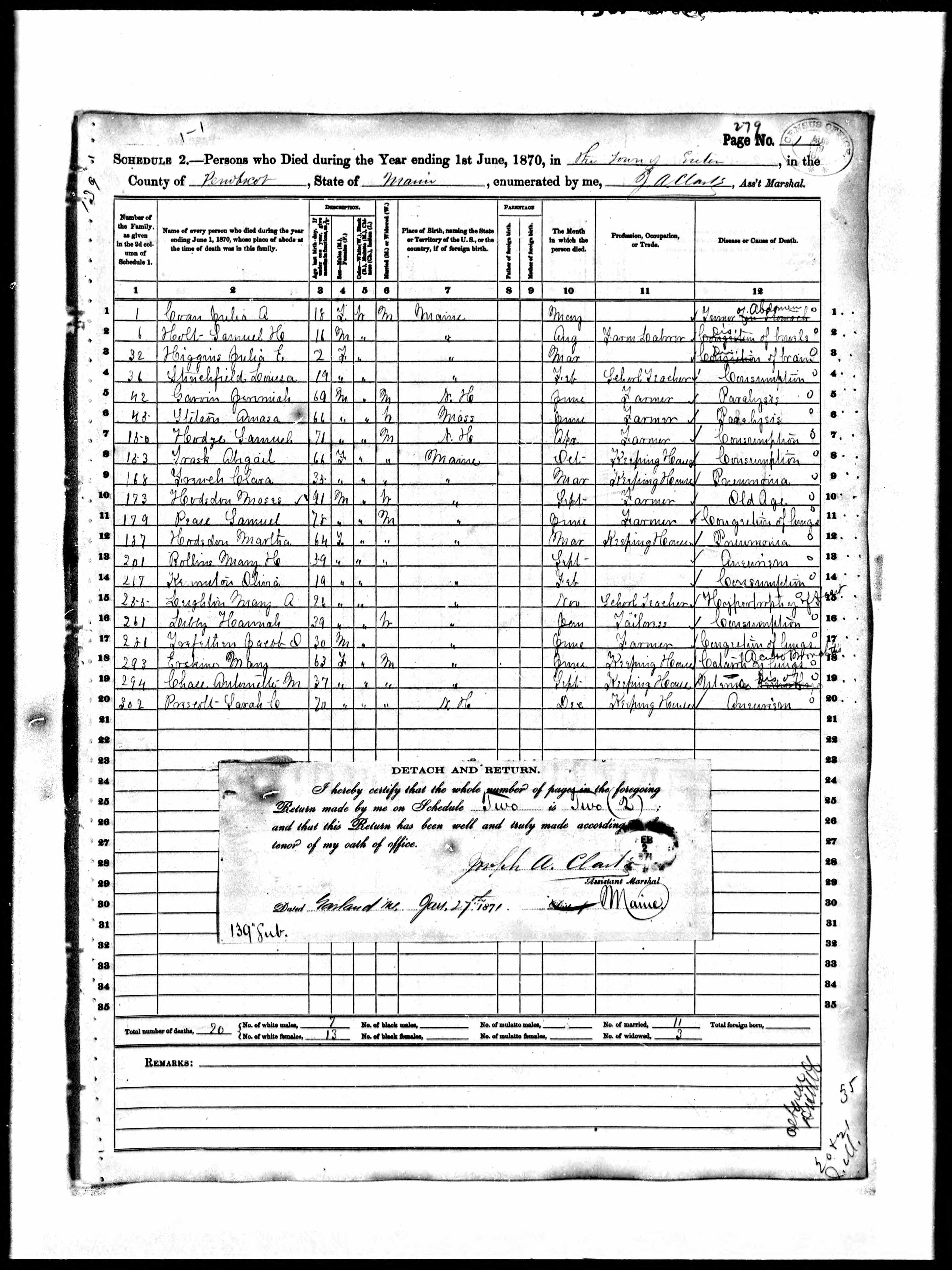 Samuel Pease Sr Death 1870 |