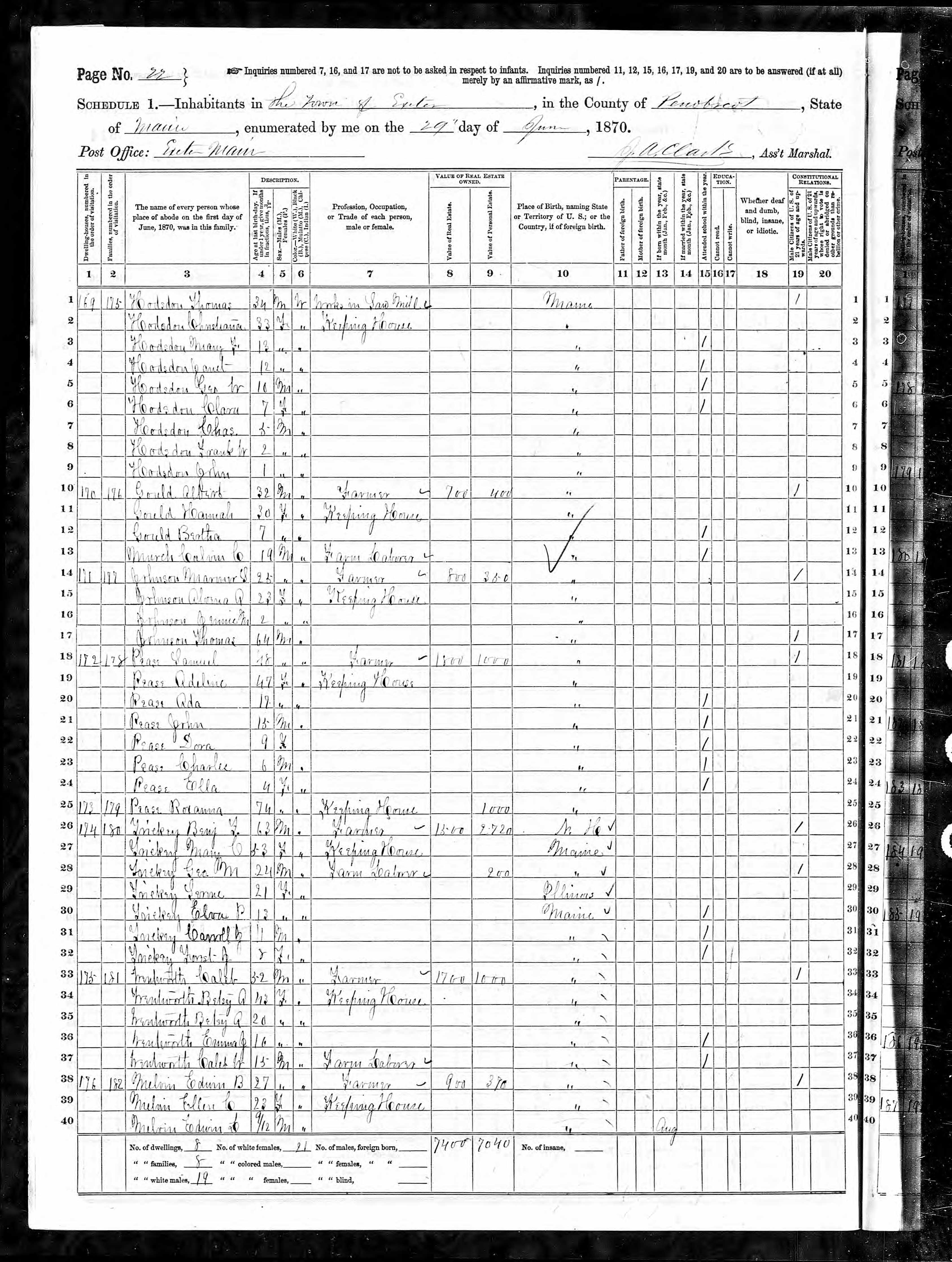 Roxannah Hutchinson Pease Census 1870 |