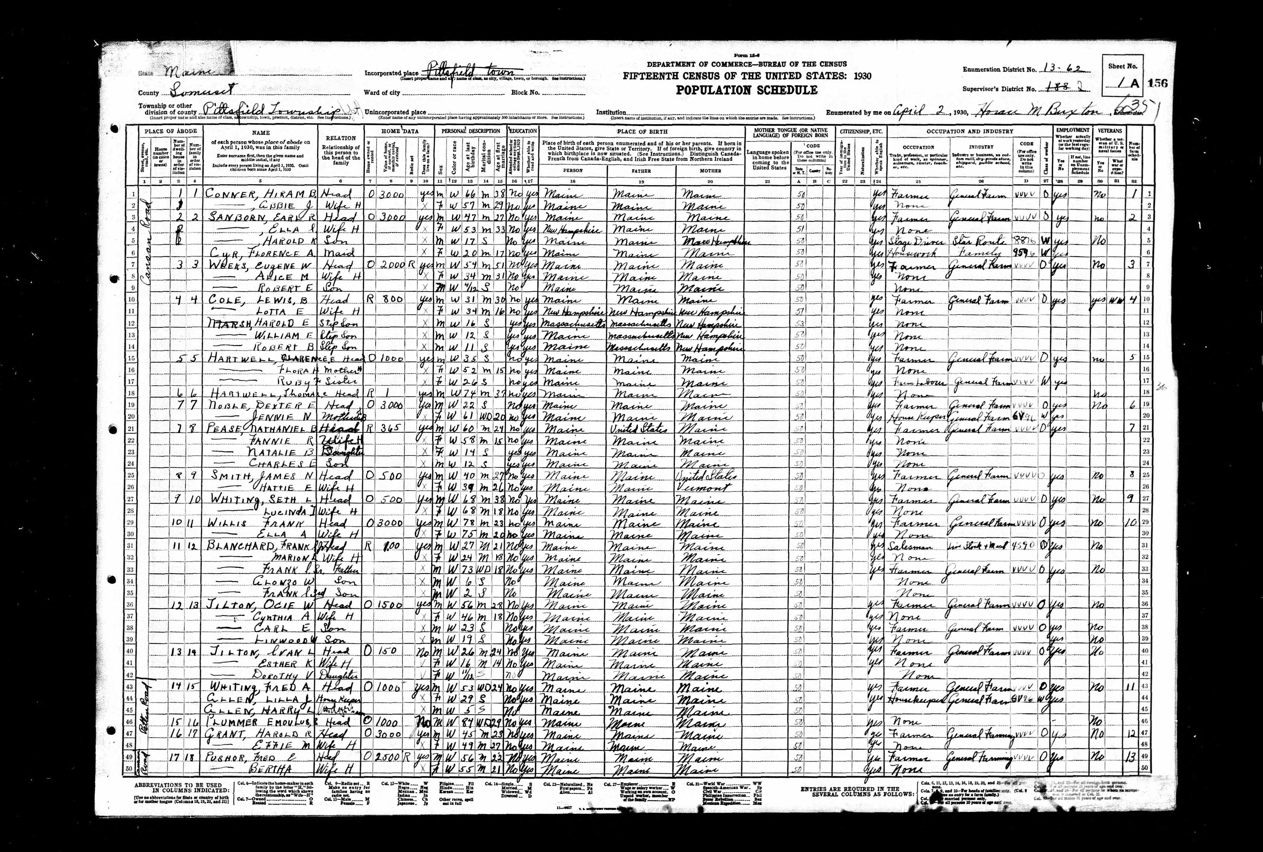 Nathaniel B Pease Jr 1930 Census |